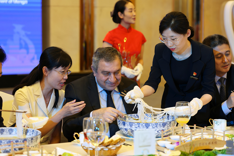 云南省红河哈尼族彝族自治州州委副书记、州委宣传部部长应亥宗在“桥宴”特别环节中致辞表示,蒙自作为红河州州府所在地,是过桥米线的发源地,素有“中国过桥米线之乡”和“国际(过桥米线)美食名城”的美誉。希望借助兰花奖这个国际文化交流互鉴平台、通过“兰花之夜·桥宴”,把中国西南边陲的传统文化展示给各国贵宾和好朋友们,进一步加深友谊,开辟多样性文化交流互鉴的新局面。