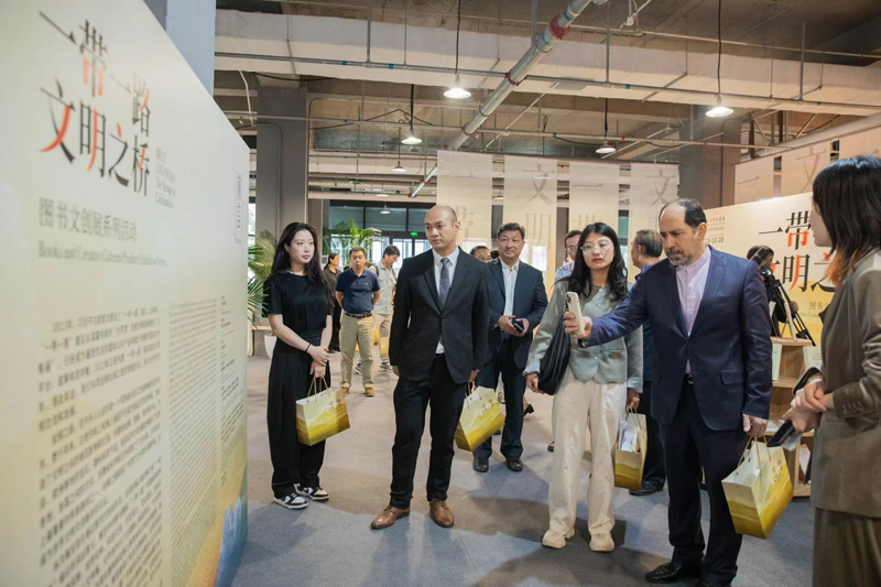 9月28日,为进一步弘扬丝路精神,促进中外文化交流,增强中华文明传播力、影响力,由北京发行集团联合中国外文局国际传播发展中心主办,北京图书大厦承办,首都版权协会、中国现当代美术文献研究中心协办的“一带一路,文明之桥”图书文创展系列活动在北京图书大厦开幕。中国新闻文化促进会副会长兼“一带一路”新闻文化工作委员会主任许红海,北京发行集团党委书记、董事长郭小明,伊朗驻华使馆一等参赞内马提,老挝驻华使馆三等秘书明君,中国外文局国际传播发展中心副主任董彦,北京市委宣传部对外推广处处长谢豫,北京出版集团党委委员、董事、副总经理周浩,北京发行集团副总经理徐威等出席开幕仪式。