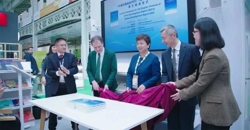 3月12日,由中国外文局指导,外文出版社和中国发展出版社主办的《中国发展报告2023》和《全球发展报告2023》英文版首发式在2024年伦敦国际书展上举行。中国外文局副总编辑、国际传播发展中心主任陈实,中国驻英国大使馆公使王起,外文出版社资深外籍专家大卫·弗格森,中国发展出版社总编辑梁仰椿,以及外文局所属单位领导等中外嘉宾30余人出席活动。国务院发展研究中心副主任隆国强通过视频方式致辞。