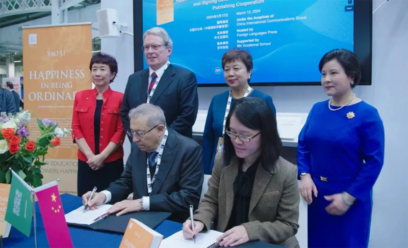 3月12日,由中国外文局指导,外文出版社主办的《做幸福的普通人——百年职校的故事》英文版首发式暨国际出版合作签约仪式在2024年伦敦国际书展上举行。中国外文局副总编辑、国际传播发展中心主任陈实,中国驻英国大使郑泽光夫人华梅参赞,爱尔兰前驻华大使戴克澜(Declan Kelleher),阿拉伯科学出版社社长巴萨姆·切巴罗,泛亚妇女协会联合创始人姚咏蓓,百年职校理事长姚莉,以及外文局所属单位领导等中外嘉宾30余人出席活动。